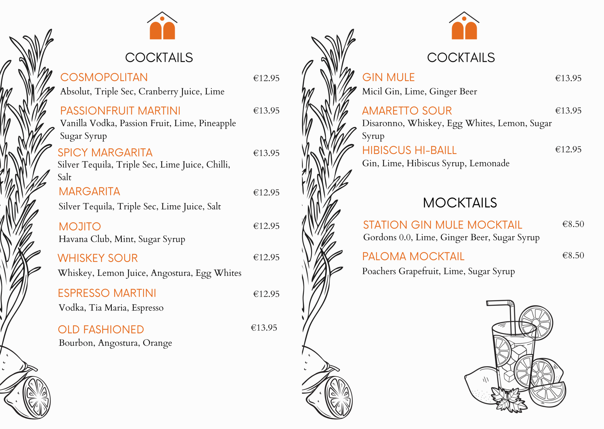 Dinner is served from 18.00. Pre-Booking is advised, please call 095-21699 to make a reservation. Our menu changes seasonally, however, you can see a sample menu below.